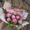 Un diseño lleno de encanto, compuesto por peonías premium, limonio y follajes frescos de la temporada.